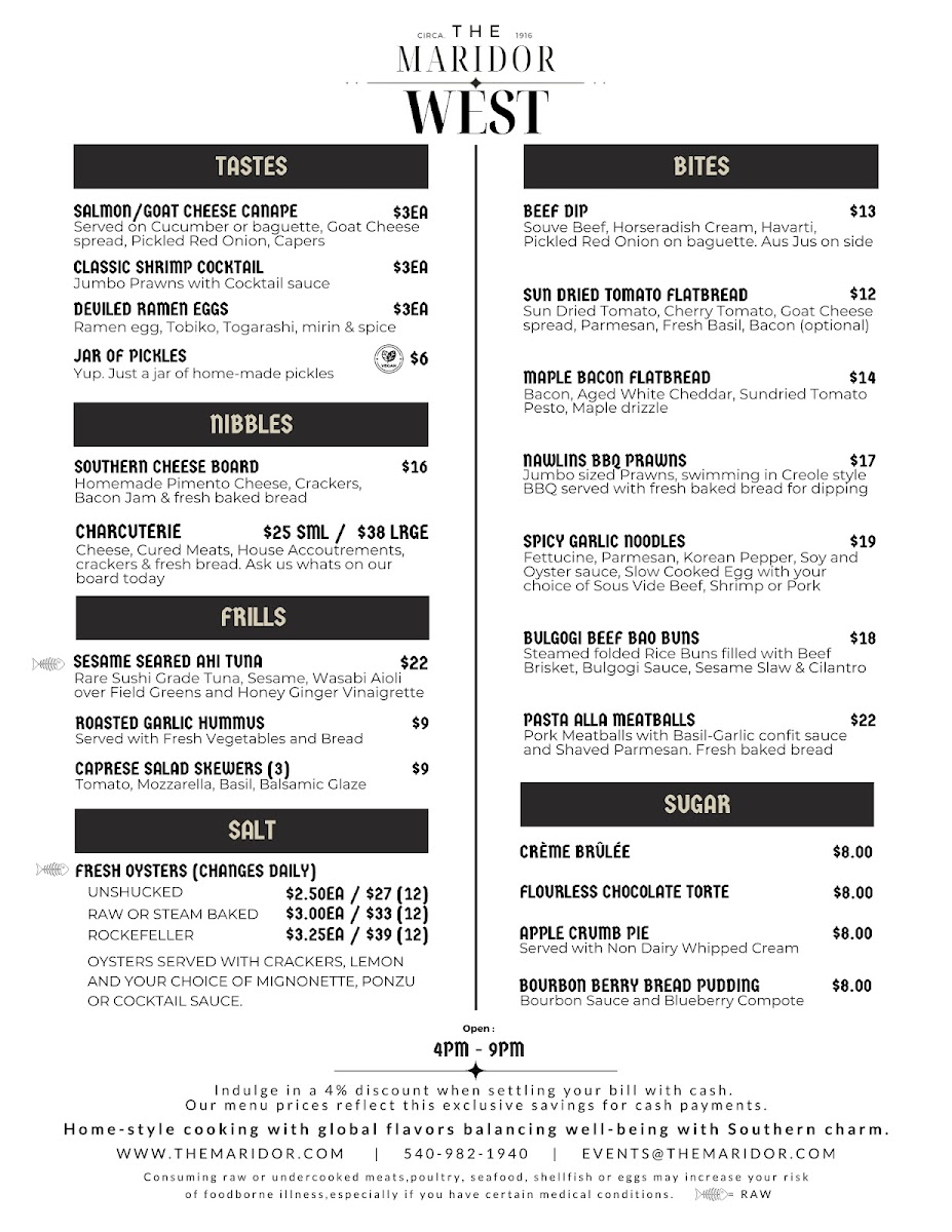 Introducing "The Maridor," a culinary gem nestled in the heart of Roanoke, Virginia. This exquisite venue offers a delightful fusion of flavors through its thoughtfully curated menu. Highlights include the Rice Bowl featuring crispy smoked pork belly and sesame slaw, alongside a vibrant Garden Bowl packed with fresh veggies and creamy avocado kimchi. Each dish is a testament to culinary creativity.